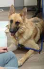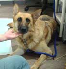 (2005年2月下旬) ★ムーちゃんのその後ですが、訓練所より連絡があり4月の競技会に出る事が決定しました。スタッフ一同喜んでいたので すが・・・・。ある日、訓練所から連絡があり「命令は良くきくのですが、落ち着きが無く・・・競技会は残念ですが無理のよう です。」ガーン(スタッフ一同)「でも卒業試験が受けられますので、今はそれに向けてがんばっていきます」と言うことで、競 技会には出られないですが、うまく卒業できるといいなー。ムーちゃんの卒業の予定は4月の半ば。サクラの季節は終わり かけだけど暖かい日差しの下を一緒にお散歩できる日がとっても待ち遠しいです。 ←シェパードの壁掛け(金属製) |