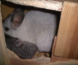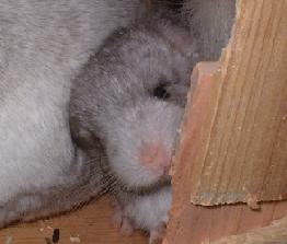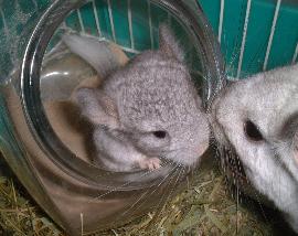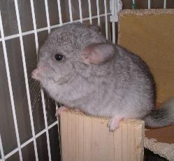チンチラって、くんくんするとき、たまに鼻先がのびて、変な顔になりますよねえ。今日のちびが、そんなかんじ 本当は右みたいに丸っこい顔でかわいいんだけど。 |