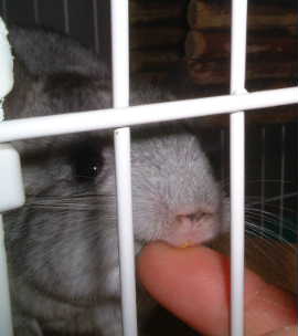 最後の夜、甘噛みをしてくれたちび。黄色い歯が見えます。。。。そして、ドナドナと運ばれていきました。 |