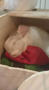 布類は齧ってしまう子もいれば、齧らないでお布団で寝る子もいます。まずはその子の性格を見極めてください。もちろん布を齧る子には布類は近づけないことです。