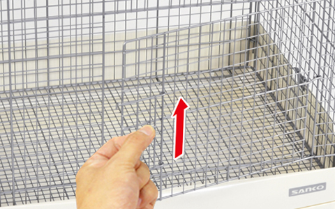 サイズ(外寸):W620xD505xH550mm (キャスター部50mm含む) 床面: 60ローメッシュスノコ 1枚 | |||||||