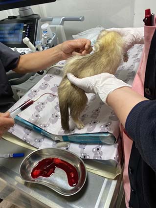 幼少のフェレットの場合、生まれつき虚弱で脾臓肥大と診断された場合は、先天性の遺伝疾患が考えられます。血管異常が原因です。そうでなく、いままで元気だったフェレットが突然、衰弱して、脾臓肥大と診断された場合は、ジステンパーやインフルエンザ等の感染、中毒性物質の飲み込み等が考えられます。脾臓以外の検査が必要です。