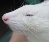 白くくすんでいる場合は白内障の場合もあります。フェレットの白内障はまれなことですが、少ないながら発生しています。遺伝的な要因や高齢要因があるようです。両目同時におきやすいです。フェレットは聴覚や嗅覚が発達しており、目がみえなくても生活に大きな支障はおきませんが、手術治療という選択肢もあります。
