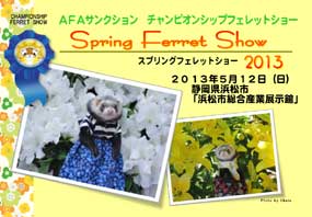【イベント報告】 ![]() 2013年5月12日(日) フェレットショー「Spring FerretShow 2013」 会場:静岡県浜松市「浜松市総合産業展示館」 フェレットショーに出店しました。ブースにお立ち寄りのお客さま、お買い物いただいたお客さま、お声をかけていただいたお客さま、ありがとうございました。運営企画された実行委員会の皆様、お疲れ様でした。 多くのお客さまと交流ができてよかったです。また今後の新商品開発のアイデアやご意見もありがとうございました。