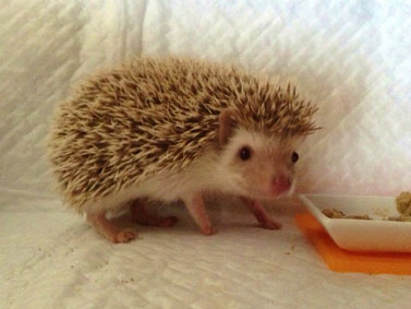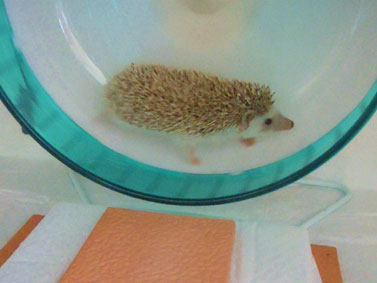 好き嫌いはなく食欲旺盛で、ほっそりとしていた身体も徐々に ハリネズミさんらしい曲線になり、体重は200gを超えました。 迎えたばかりの頃は食事のときに左手が浮いてしまうこともありましたが、 今はふらつくことも滅多にありません。 砂を掘るのにも両手を交互に使っていますし、 他の子と比べるとゆっくりではありますがホイールも回せるようになりました (但し上るのに3段積みの足場が必要です)。 ケージ中、隅から隅まで散らかし放題(笑)で、 毎日元気に遊んでいます。 ハリネズミちゃんの経過報告をいただきました。 |