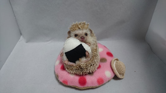 フェルトのおにぎりを持つ食いしん坊のくるみたんです(^-^)