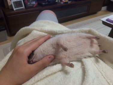 まだ警戒心を持っている場合は、夜中にコミュニケーションをとってみてください。手には、タバコや香水の匂いをつけないようにしましょう。痛くても我慢し、両手ですくいあげて、10分くらいずっと持ち続けてください。その際に威嚇しても気にしないで下さい。痛いからといって、決して床に落とさないで下さい。10分後くらいに顔を出して、丸まらなければ成功です。そっとお腹を撫でてみてください。これを毎日、1回づつ行います。するとだんだん飼い主さんの手の匂いを覚えて慣れてきます。