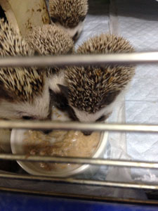 このころから子供のハリネズミに離乳食で、良質なフードをドロドロにした物に、ネコ用ミルクやヤギミルクを混ぜた物を1日数回与えます。