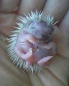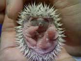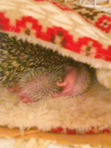 ハリネズミの子供は体温調節が非常に苦手です。ヒーターを使用して、しっかり暖めます。また乾燥状態は体毛の生え揃っていないベビーには脱水の原因になりますので加湿を心がけます。(濡れた布を片隅に置くなど)