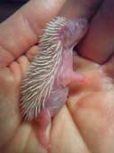 出産直後のハリネズミの子供は、針は一見して生えていないように見えます。実際は針は水分がたっぷり含まれた皮膚の中に埋もれている状態です。