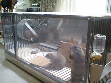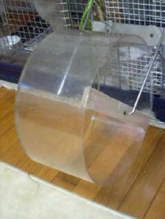 −お客様のご投稿− ←全体図(室内散歩時) 横1240mm盾650mm奥行き640mm 回し車はアクリル製自作 ←内面図(スノコはアイリスU50X3) 前面は塩化ビニール5mm 枠は20mm角のステンレス材 ↑側面はオダントマ対策で12,5mmもステンレスパイプを15mm間隔で取り付け 背面は4mmアルミ板 ←手作りの回し車。既製品の様に綺麗な仕上がりですね。