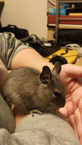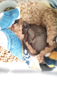 「ちょこ」と名付けた赤ちゃんはご飯もたくさん食べ、 お喋りもたくさんしてくれるようになりました。 マッサージも大好きで、アゴを撫でられると気持ち良さそうに目を細めてくれます。 最近はハンモックがお気に入りで、ごそごそしながらキュルキュル鳴いています。 健康診断の結果も良好で、 体重が90gだと言われた時に大きくなってるなと少し驚きました。 これからも家族みんなでちょこを大切にしていきます。 彼と出会わせてくださり、本当にありがとうございました。 |