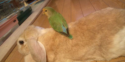 ウサギの上に辰( 立つ)インコ
