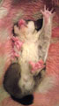 ![]() ![]() フクロモモンガは栄養不足による脱毛が多々発症します。それらは環境や食事内容の改善により治る場合もあります。しかし、成熟したオスのフクロモモンガの頭部と胸部の脱毛は臭腺によるものなので、病気ではありません。メスでも臭腺分泌物の過剰分泌で頭が脱毛することがあります。 ![]() 金属ケージの網が錆びると、接触するお腹が炎症をおこして脱毛することがあります。ケージはよく洗浄して錆びないようにお手入れが必要です。錆びの出ないアクリルケージを使用するのもいいでしょう。 ![]() 手作りのエリザベスカラーで皮膚治療中