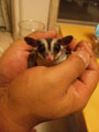 よく慣れた子でしたら普通に持てます。![]() ![]() ![]() ![]() そうでない子の場合で爪切りをするような場合は、寝袋ごと持ったり、親指と中指で頭の左右をしっかり抑え、人差し指を頭にのせます。あとの2本で体を包んで持ちます。 診察や治療等でフクロモモンガの体をやむをえず固定しなければならないときは、頭の皮をつまんで持ちます。首や背中をつまむと噛まれたりします。 ![]() |