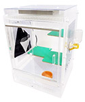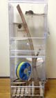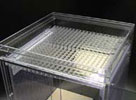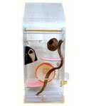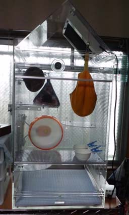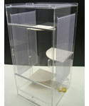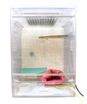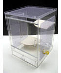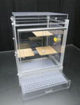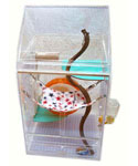 天井と側面に通気孔がたくさんあり、夏でも蒸れることを防ぎます。金網ケージと違い直接フクモモちゃんに冷房は当たりませんし、アクリルケージ自体が冷たくなるので涼しい環境が作れます。糞尿は周りに飛び出さないので、メンテナンスが簡単で清潔な環境を保てます。臭い対策や清潔な環境を好まれる方がアクリルケージをお求めになります。アクリル水槽と同じなので、水洗いで直ぐ綺麗になりす。